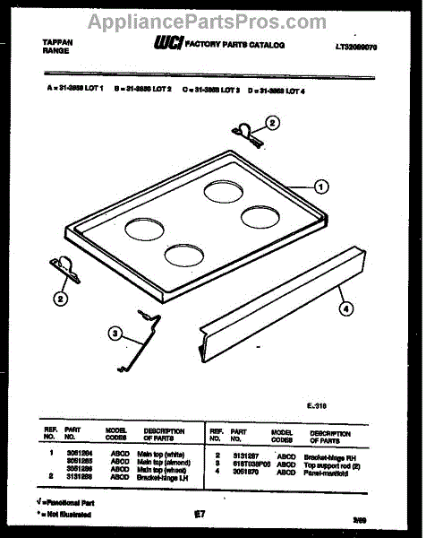 Parts for Frigidaire 31-3858-23-03: 04 - Cooktop Parts