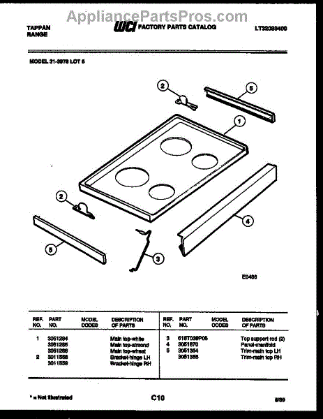 Parts for Frigidaire 31-3978-66-05: 05 - Cooktop Parts