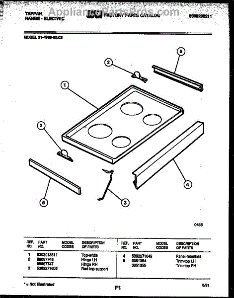 Parts for Frigidaire 31-4989-00-03: 03 - Cooktop Parts
