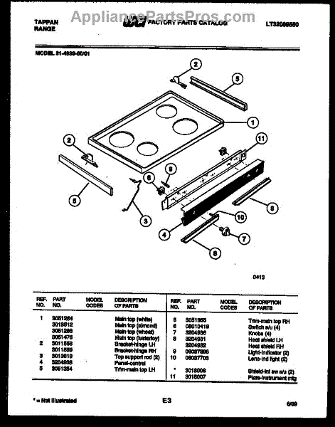 Parts for Frigidaire 31-4999-00-01: 03 - Cooktop Parts
