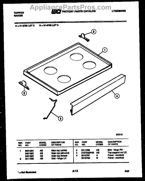 Parts for Frigidaire 31-6758-00-05: 03 - Cooktop Parts