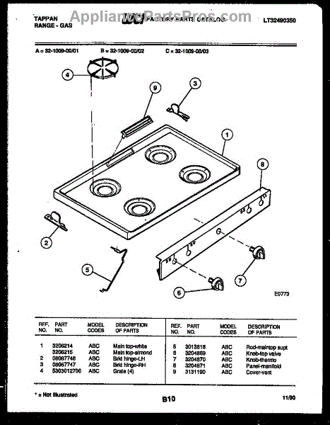 Parts for Frigidaire 32-1009-00-03: 03 - Cooktop Parts