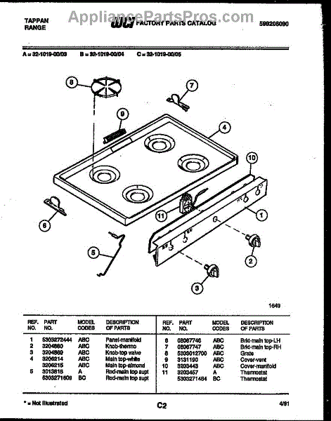 Parts for Frigidaire 32-1019-00-05: 03 - Cooktop Parts