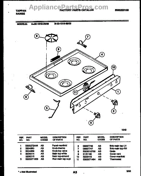Parts for Frigidaire 32-1019-00-08: 03 - Cooktop Parts