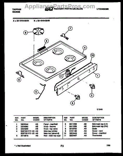 Parts for Frigidaire 32-1019-23-01: 03 - Cooktop Parts