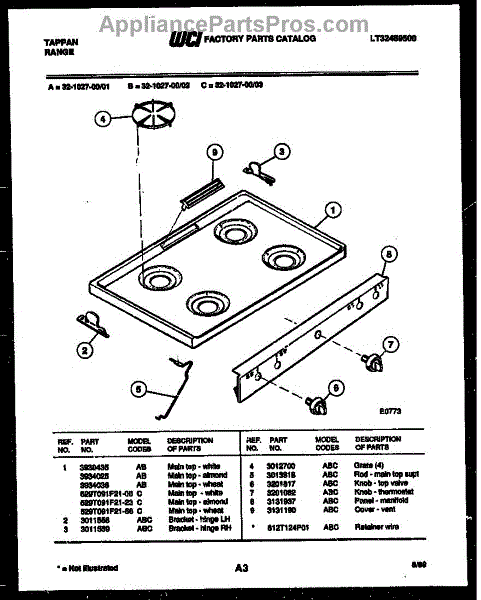 Parts for Frigidaire 32-1027-00-03: 03 - Cooktop Parts