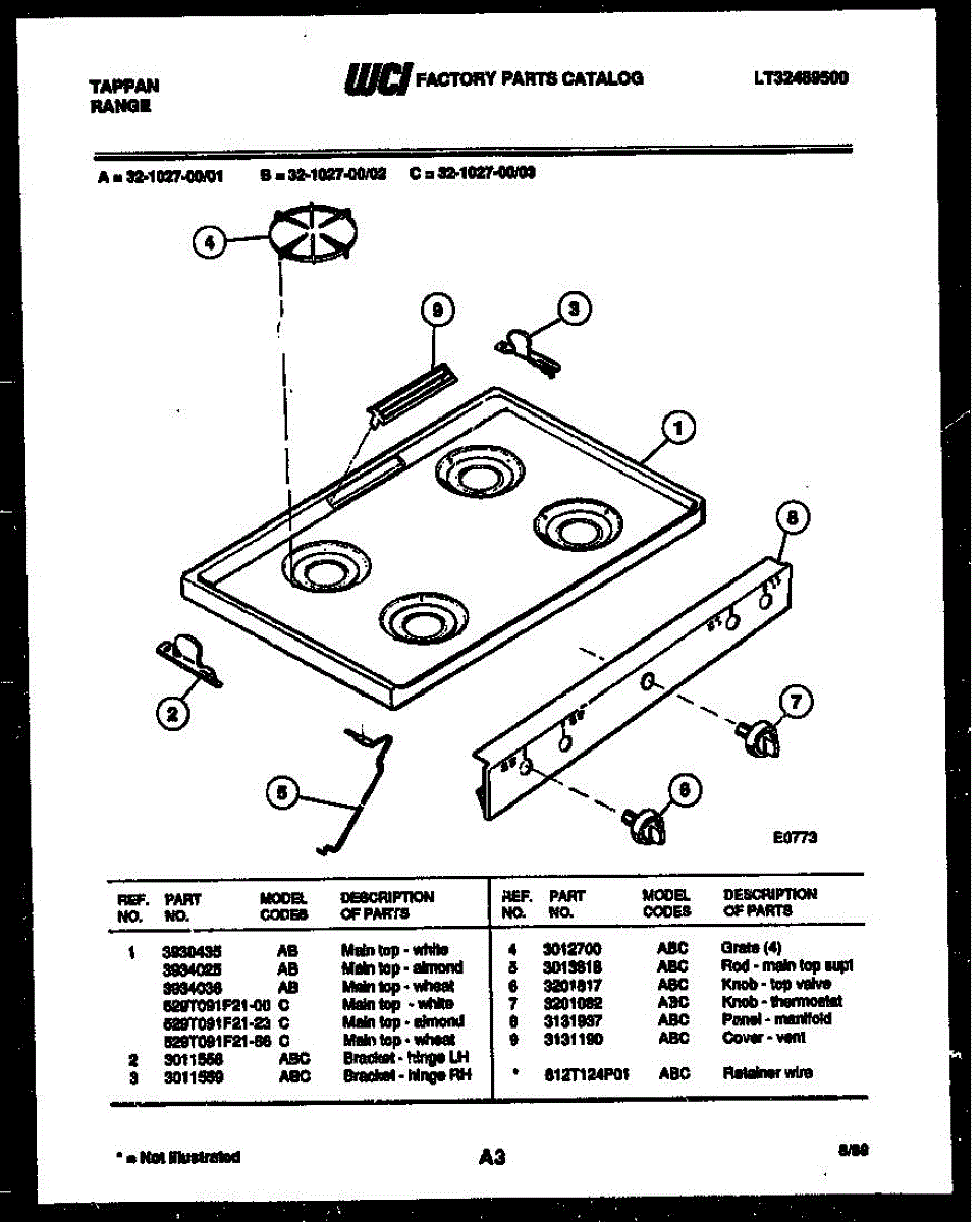 Parts for Frigidaire 32-1027-23-02: 03 - Cooktop Parts