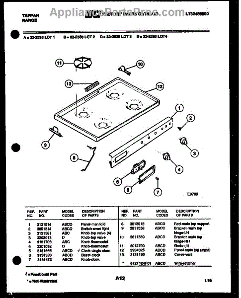 Parts for Frigidaire 32-2538-23-03: 03 - Cooktop Parts