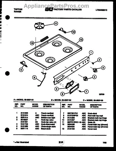 Parts for Frigidaire 32-2637-23-02: 03 - Cooktop Parts