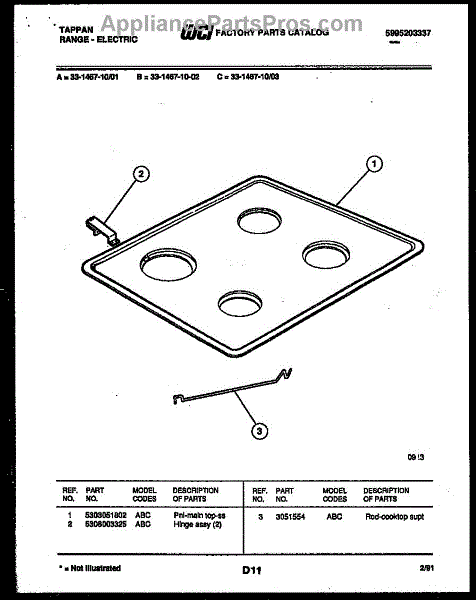 Parts for Frigidaire 33-1467-00-02: 04 - Cooktop Parts