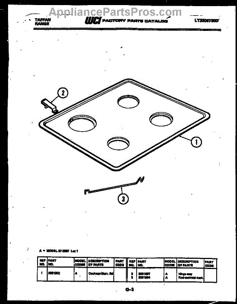Parts for Frigidaire 37-2957-00-01: 03 - Cooktop Parts