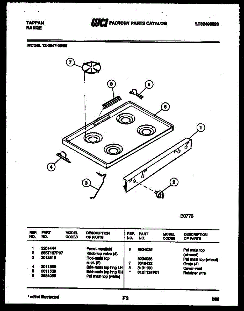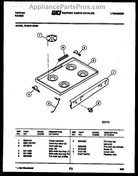 Parts for Frigidaire 72-2547-00-08: 03 - Cooktop Parts