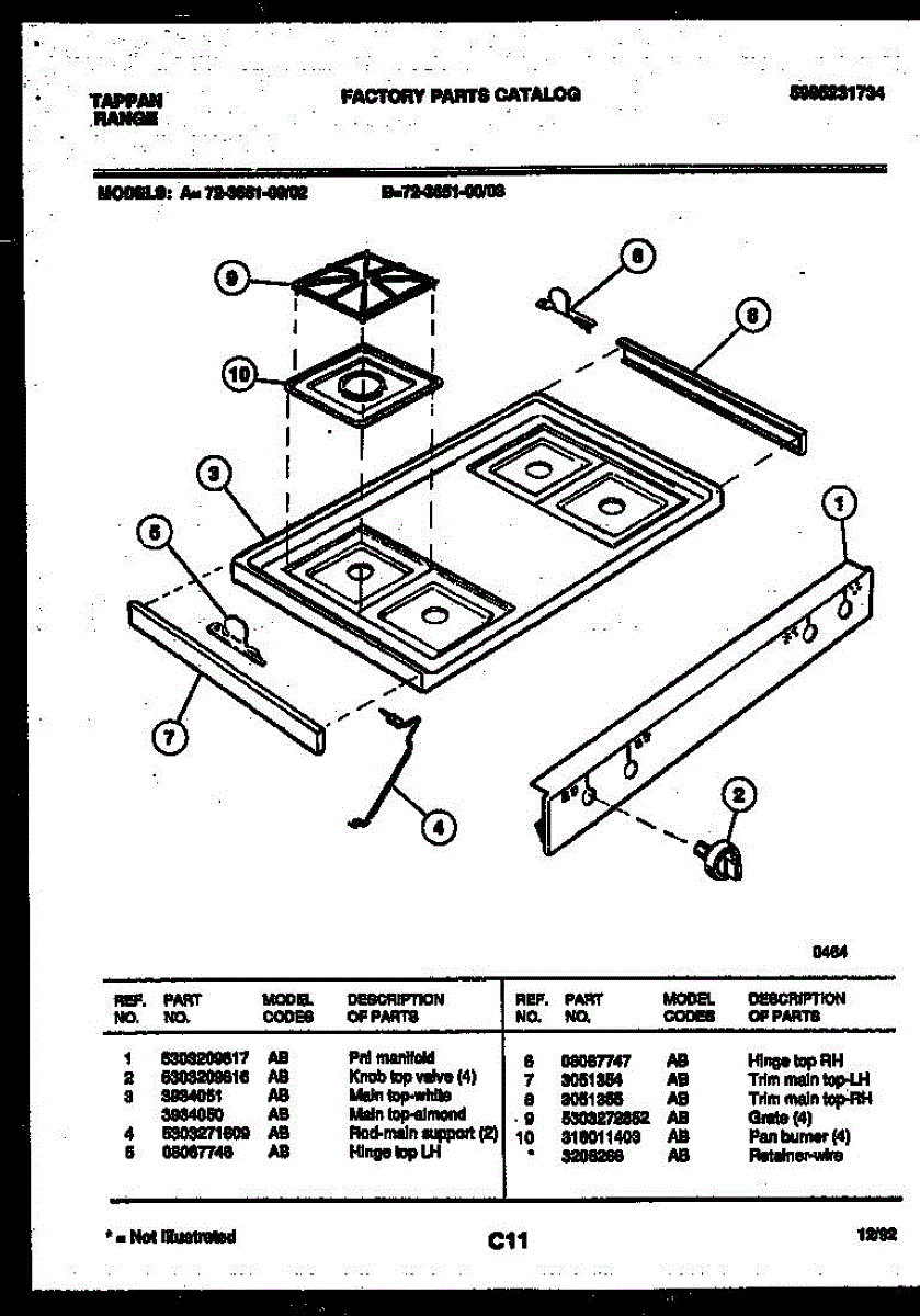 Parts for Frigidaire 72-3651-23-02: 03 - Cooktop Parts