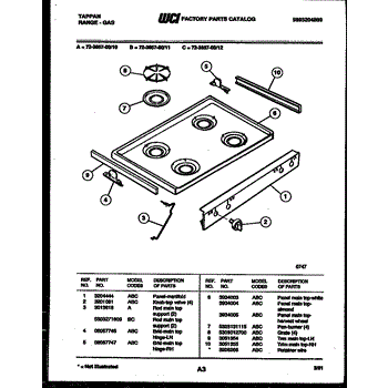 Parts for Frigidaire 72-3657-00-12: 03 - Cooktop Parts