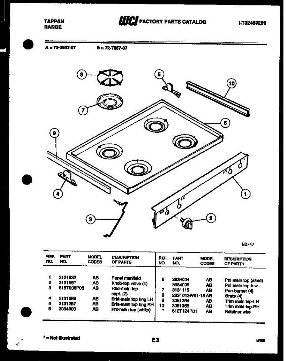 Parts for Frigidaire 72-3657-23-07: 03 - Cooktop Parts