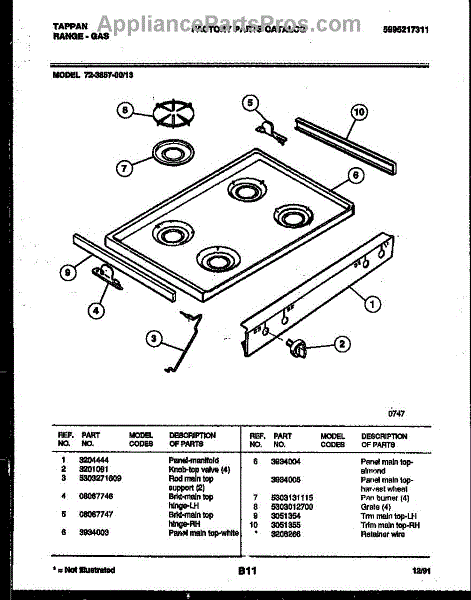 Parts for Frigidaire 72-3657-23-13: 03 - Cooktop Parts
