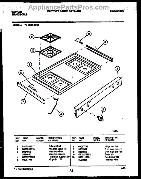 Parts for Frigidaire 72-3662-00-01: 03 - Cooktop Parts
