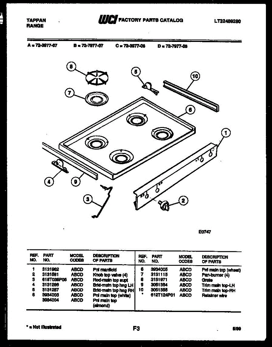Parts for Frigidaire 72-3977-00-08: 03 - Cooktop Parts