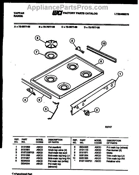 Parts for Frigidaire 72-3977-23-05: 03 - Cooktop Parts