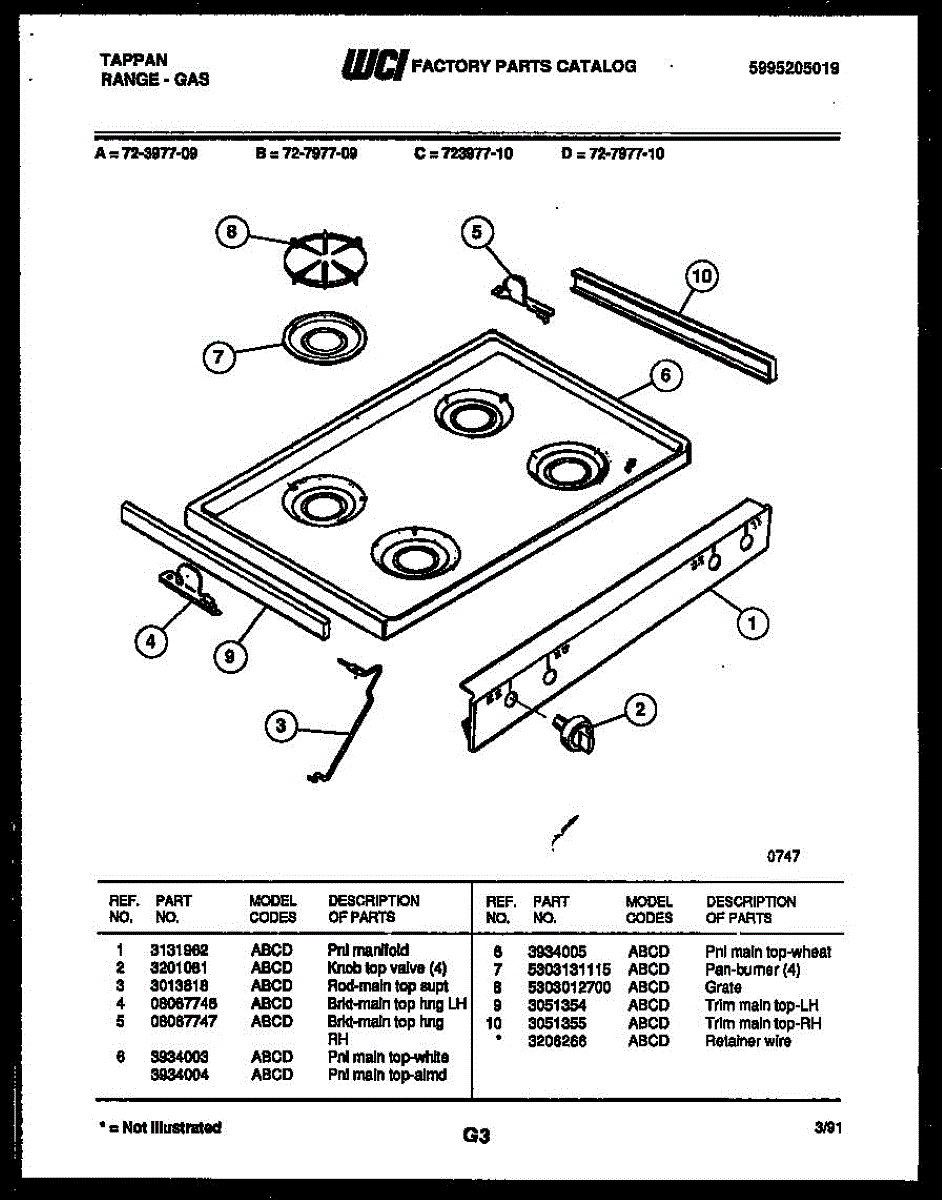 Parts for Frigidaire 72-3977-23-10: 03 - Cooktop Parts