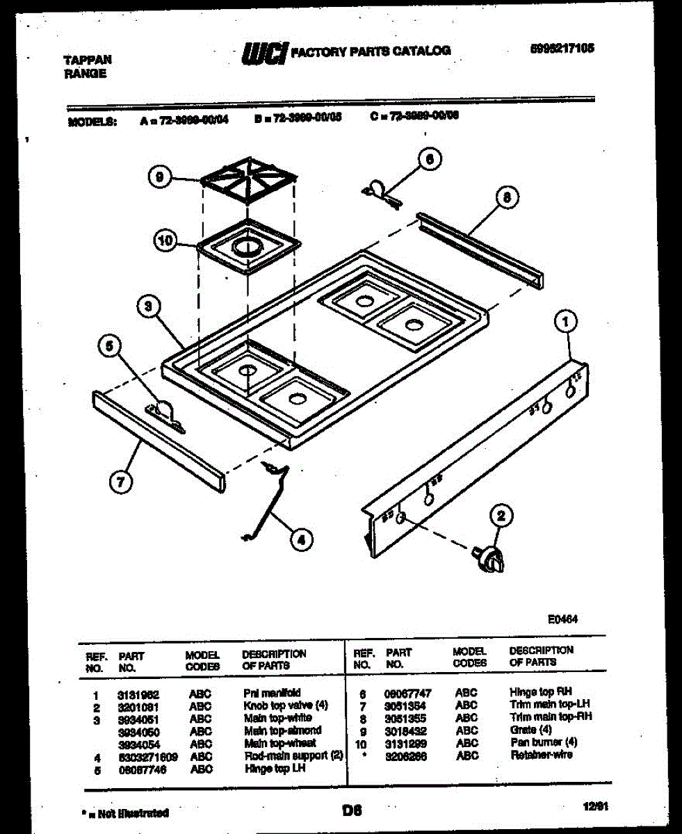 Parts for Frigidaire 72-3989-00-04: 03 - Cooktop Parts