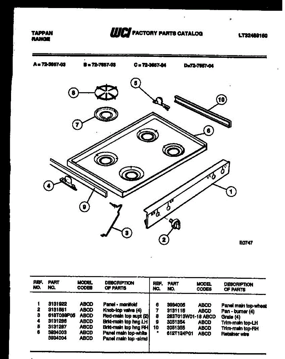 Parts for Frigidaire 72-7657-00-04: 03 - Cooktop Parts