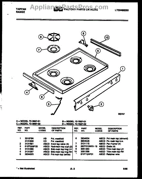 Parts for Frigidaire 72-7657-23-02: 03 - Cooktop Parts