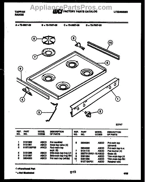 Parts for Frigidaire 72-7657-66-05: 03 - Cooktop Parts