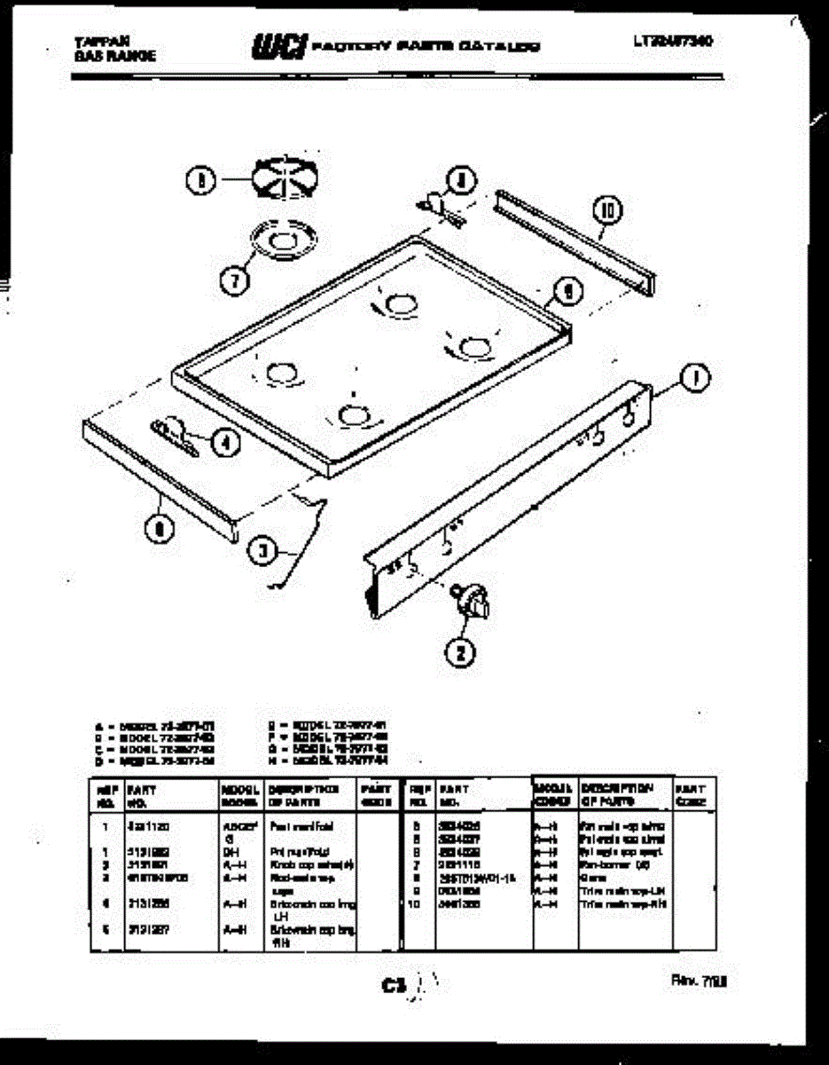 Parts for Frigidaire 72-7977-23-03: 03 - Cooktop Parts
