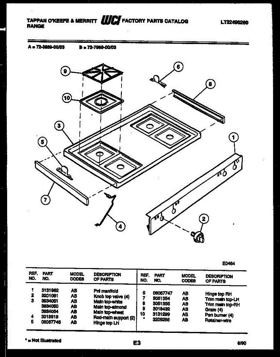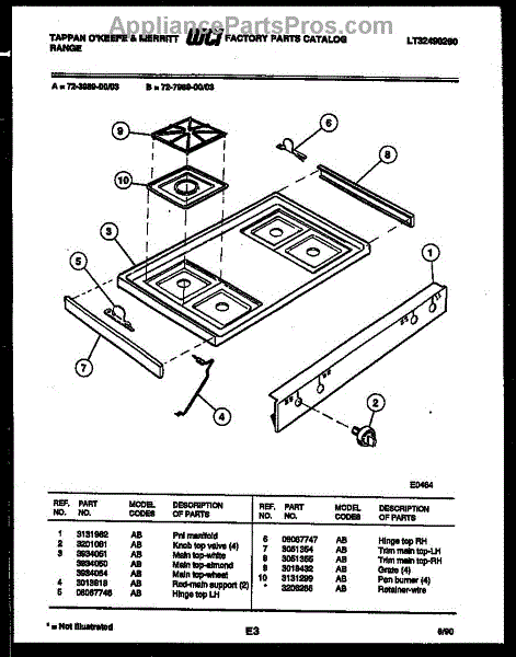 Parts for Frigidaire 72-7989-00-03: 03 - Cooktop Parts