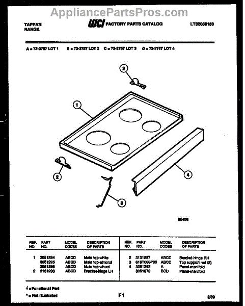 Parts for Frigidaire 73-3757-00-02: 04 - Cooktop Parts