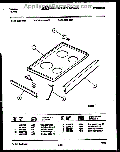 Parts for Frigidaire 73-3957-00-05: 03 - Cooktop Parts