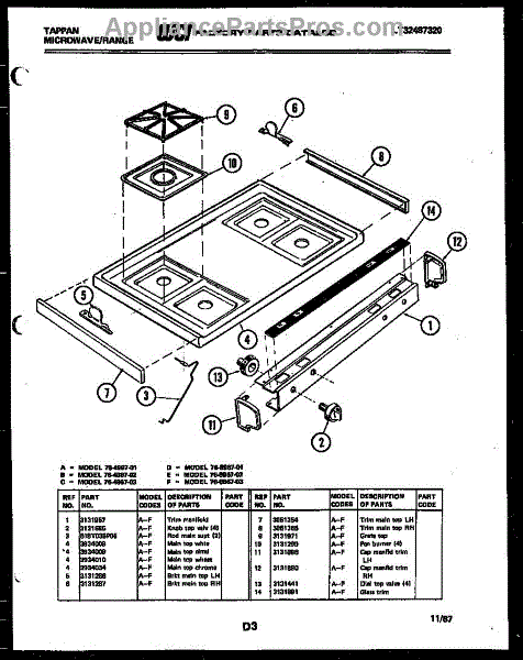 Parts for Frigidaire 76-4967-00-03: 03 - Cooktop Parts