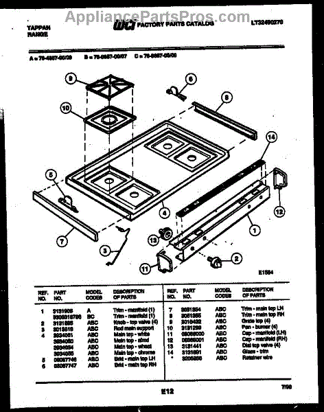 Parts for Frigidaire 76-8667-00-08: 03 - Cooktop Parts