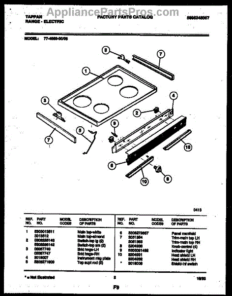 Parts for Frigidaire 77-4950-00-05: 02 - Cooktop Parts