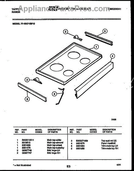 Parts for Frigidaire 77-4957-00-10: Cooktop Parts