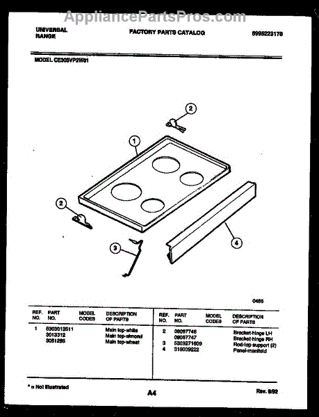 Parts for Frigidaire CE303VP2H01: 04 - Cooktop Parts