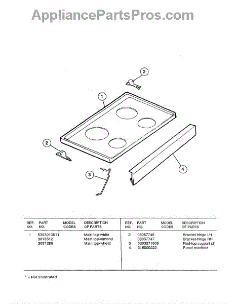 Parts for Frigidaire CE303VP2W01: Cooktop Parts