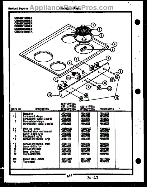 Parts for Frigidaire CEC1M1WSTA: 07 - Cooktop Parts