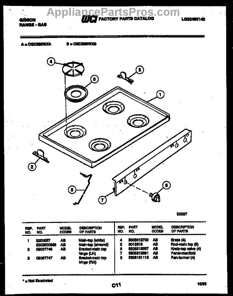 Parts for Frigidaire CGC3S5WXA: 03 - Cooktop Parts