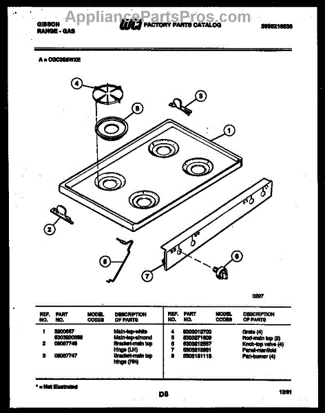Parts for Frigidaire CGC3S5WXE: 03 - Cooktop Parts