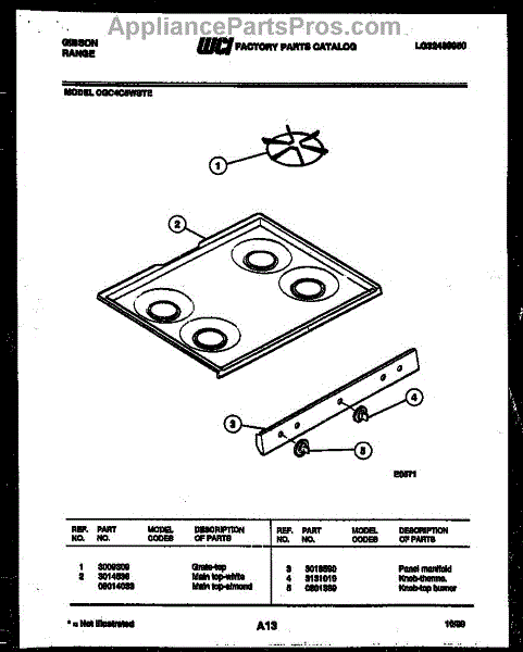 Parts for Frigidaire CGC4C5WSTE: 03 - Cooktop Parts