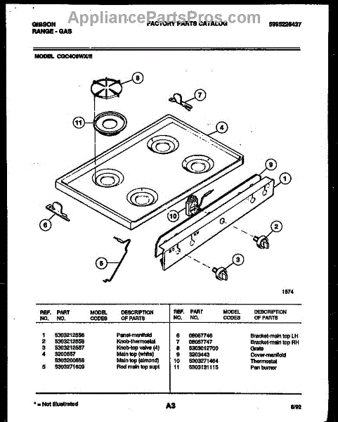 Parts for Frigidaire CGC4C6WXE: 03 - Cooktop Parts
