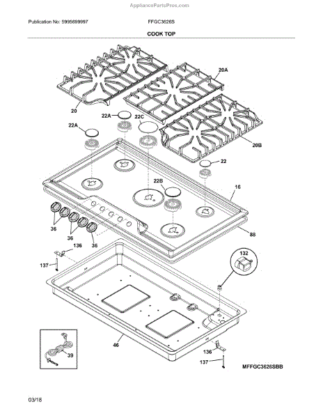 Parts for Frigidaire FFGC3626SSC: Cooktop Parts