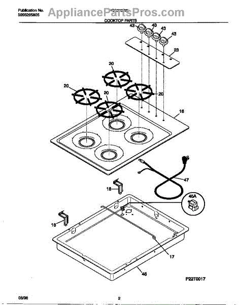 Strain relief retainer secures electrical cables at the cooktop connection point. Replace if cracked, broken, or missing to protect wiring integrity.