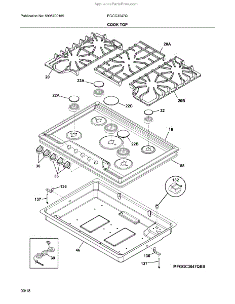 This main top is the cooktop panel that forms the upper surface of the range. It restores a clean, stable surface for burners and controls and helps contain spills so the range looks and functions properly. What it does: