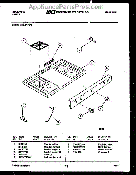 Parts for Frigidaire G30LPNL3: 03 - Cooktop Parts