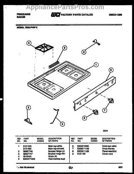 Parts for Frigidaire G30LPNW2: 03 - Cooktop Parts