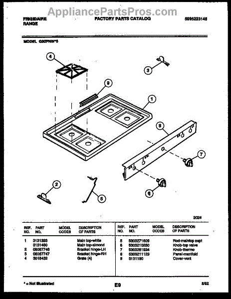 Parts for Frigidaire G30PNL6: 03 - Cooktop Parts