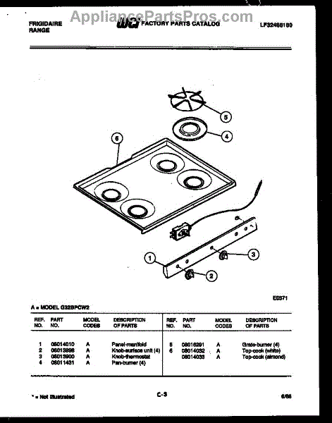 Parts for Frigidaire G32BPCL2: 03 - Cooktop Parts